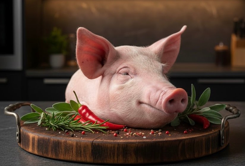 Pork head cut includes various portions taken from the pig’s head, such as cheek, jowl, and other tender, flavorful sections. These cuts contain a mix of meat, fat, and connective tissue, giving them a rich taste and soft texture when slow-cooked. Pork head cut is commonly used in traditional dishes, soups, stews, or braised preparations, where it becomes tender and deeply savory.