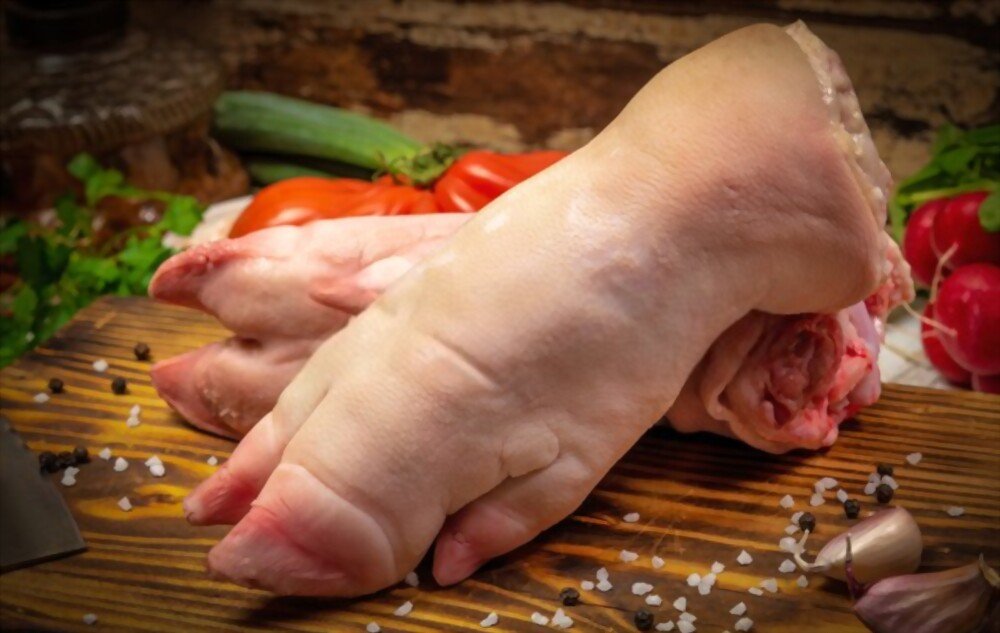 Pork trotters are the feet of the pig, rich in collagen, connective tissue, and natural gelatin. When slow-cooked, braised, or stewed, they become tender and release a thick, flavorful broth. Pork trotters are commonly used in traditional soups, curries, and braised dishes, valued for their rich texture and deep, savory taste.